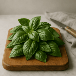 Nutritionally, basil is a good source of vitamins A, K, and C, as well as manganese, copper, and calcium. It contains essential oils with potential anti-inflammatory and antimicrobial properties. Basil is also known for its antioxidant content, contributing to overall health. Incorporating basil into your diet through dressings like Raspberry Balsamic can be a delicious way to enhance the nutrient profile of your salads.